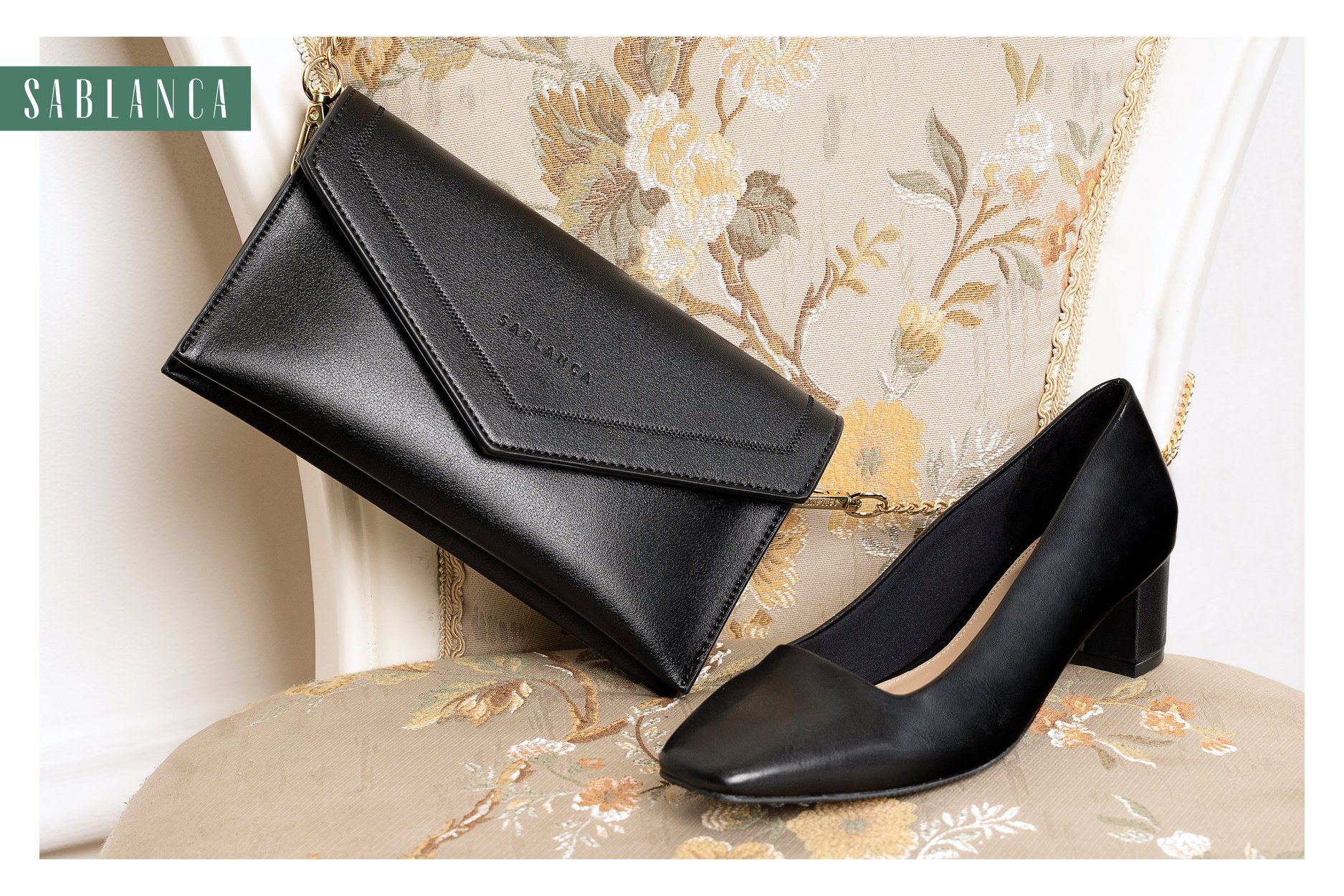 Đây là hai đại diện tiêu biểu của nhà retro vẫn chiếm được sự ưu ái trong lòng các quý cô. Ở đôi cao gót mũi vuông đế trụ mang hơi hướng cổ điển vô cùng phù hợp với chiếc ví phong thư phối dây đeo metallic hiện đại trên nền đen huyền bí, để nàng dễ dàng mix and match với bất cứ outfits yêu thích nào, tạo nên dấu ấn riêng của mình.